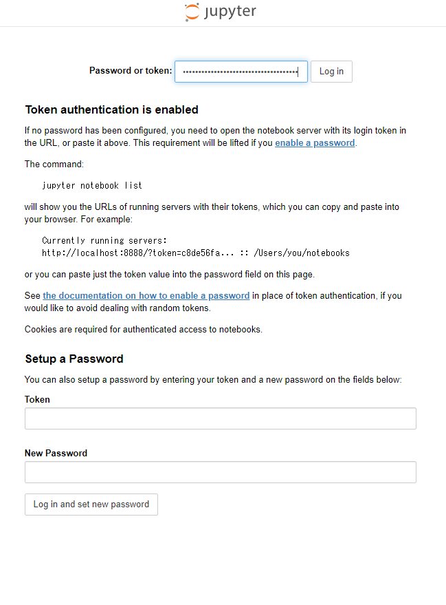 http://hostname:8888/?token=f224d1a8df7525d2cb425db670e1fccf926ad60282a2aa628888 にアクセスするよう書かれていますが、 docker で port 変換が行われているので、8890 にアクセスすべきでしょう。