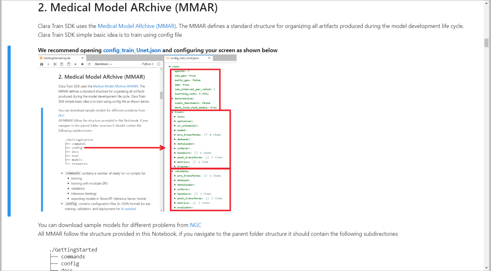 では、お勧めに従って、Gettings Started から始め行きましょうと言いたいのですが、最初の部分は v3.1 と変わりがありません。最初の説明は Medical Model ARichve(MMAR)がどのようなディレクトリ構造になっているなどの解説で、Training の基礎設定値が各ファイルに記載されていることを紹介しています。