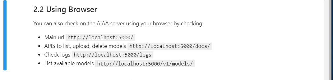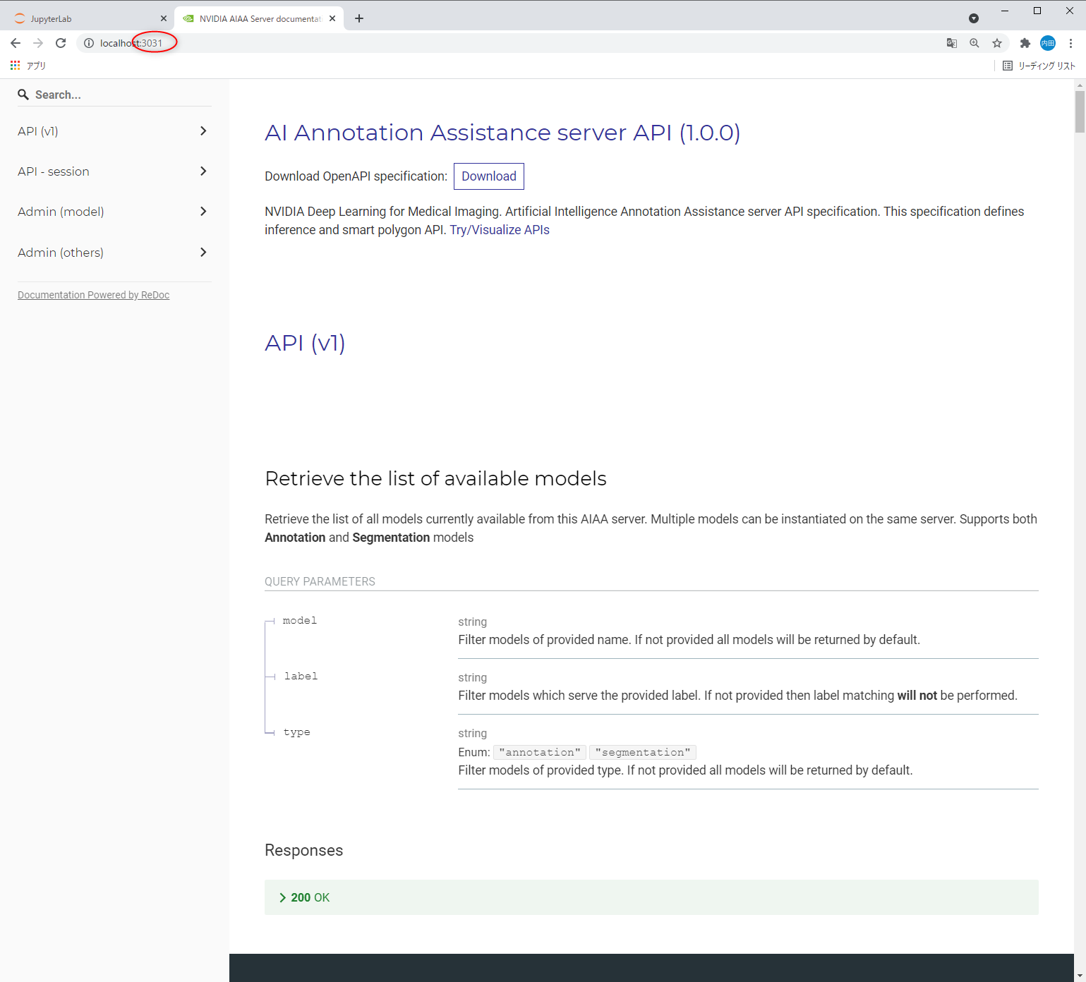 そのため、ブラウザで確認するときは localhost:3031 でアクセスする必要があります。そうすると確かに、AIAAサーバーがたちががって参照できることがわかりました。